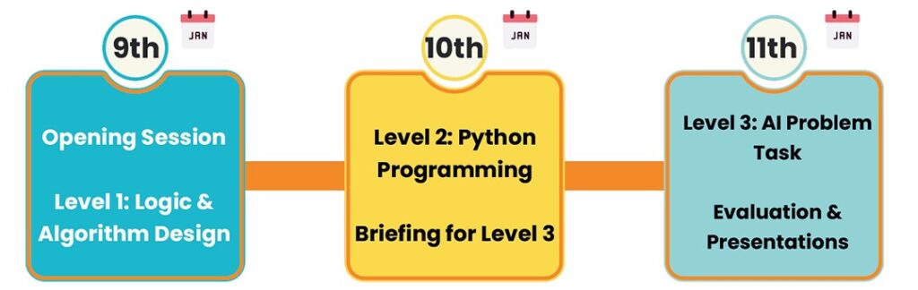 Unlock the power of computational thinking, problem-solving, and real-world coding applications. The AI & Python Tech Challenge brings together young innovators to design intelligent solutions using Python and AI fundamentals.